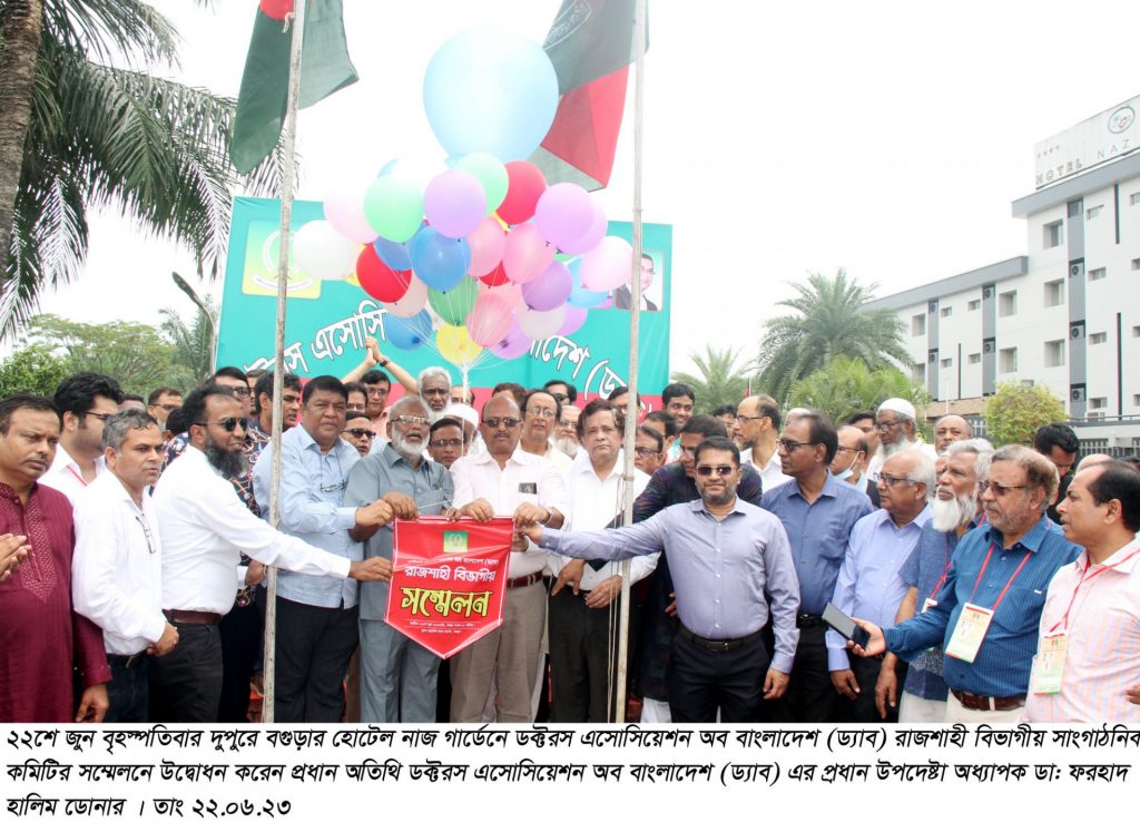 ডক্টরস এসোসিয়েশন অব বাংলাদেশ (ড্যাব) এর প্রধান উপদেষ্টা অধ্যাপক ডা: ফরহাদ হালিম ডোনার বলেছেন, দেশের অন্যান্য খাতের মতো স্বাস্থ্য খাতকে সরকার ধ্বংসের কাছে নিয়ে গেছে। এ ধ্বংসের হাত থেকে স্বাস্থ্য খাতকে রক্ষা করতে সরকারের পতন ঘটাতে হবে। তাই তারেক রহমানের ডাক আসলে ঐক্যবদ্ধ হয়ে রাজপথে নামতে হবে। পতন ঘটিয়ে আমরা ঘরে ফিরবো। তিনি ২২শে জুন বৃহস্পতিবার বগুড়ার হোটেল নাজ গার্ডেনে ডক্টরস এসোসিয়েশন অব বাংলাদেশ (ড্যাব) রাজশাহী বিভাগীয় সাংগাঠনিক কমিটির সম্মেলনে প্রধান অতিথির বক্তব্যে এসব কথা বলেন। সম্মেলনে সাবেক প্রধানমন্ত্রী ও বিএনপি চেয়ারপারসন বেগম খালেদা জিয়ার বিদেশে সুচিকিৎসা ও স্থায়ী মুক্তির দাবী জানানো হয়। ডক্টরস এসোসিয়েশন অব বাংলাদেশ (ড্যাব) রাজশাহী বিভাগীয় কমিটির আহবায়ক ও বগুড়া জেলা ডক্টরস এসোসিয়েশন অব বাংলাদেশ (ড্যাব) এর সভাপতি অধ্যাপক ডাঃ শাহ মোঃ শাহজাহান আলীর সভাপতিত্বে ডক্টরস এসোসিয়েশন অব বাংলাদেশ (ড্যাব) রাজশাহী বিভাগীয় সাংগাঠনিক কমিটির সম্মেলনে প্রধান অতিথি ডাঃ ডোনার আরো বলেন, এ সরকারকে আর সময় দেয়া যায় না।