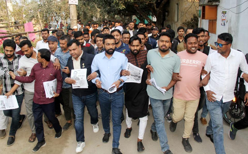 আসন্ন ত্রয়োদশ জাতীয় সংসদ নির্বাচনে বগুড়া-৬ সদর আসনে সংসদ সদস্য প্রার্থী বিএনপির চেয়ারম্যান তারেক রহমান কে বিজয়ী করতে ধানের শীষে ভোট চেয়ে শহর যুবদলের গণসংযোগ। বুধবার বগুড়া পৌরসভার ১৪নং ওয়ার্ডে শহর যুবদলের সভাপতি আহসান হাবিব মমির নেতৃত্বে বিভিন্ন বসবাসরত প্রত্যেক ভোটারদের কাছে ধানের শীষে ভোট ও দোয়া চান। তারেক রহমানের জন্য ধানের শীষে ভোট চান এবং তার পরিবারের জন্য দোয়া চেয়ে বগুড়া পৌরসভার ১৪ নং ওয়ার্ডের বিভিন্ন পাড়া মহল্লায়,দোকান,সহ বাজার এলাকায় গণসংযোগ করেন শহর যুবদলের সভাপতি আহসান হাবিব মমি। এসময় আহসান হাবিব মমি বলেন, এই আসনে বিএনপির চেয়ারম্যান তারেক রহমান এমপি নির্বাচিত হলে তিনিই হবেন বাংলাদেশের প্রধানমন্ত্রী। বগুড়ার প্রিয় সন্তান তারেক রহমান কে ধানের শীষ মার্কায় বিপুল সংখ্যক ভোট দিয়ে সংসদ সদস্য নির্বাচিত করতে হবে ইনশাআল্লাহ। তিনি আরো বলেন, তারেক রহমান প্রধানমন্ত্রী নির্বাচিত হলে বগুড়ায় ব্যাপক উন্নয়ন হবে। তারেক রহমানের নেতৃত্বে দেশ গড়ার আহ্বানে ধানের শীষে ভোট চেয়ে গণসংযোগর নিয়মিত কর্মসূচি হিসেবে চালিয়ে যাচ্ছেন এবং ভোট পর্যন্ত চালিয়ে যাবেন তার এই কর্মসূচি।
