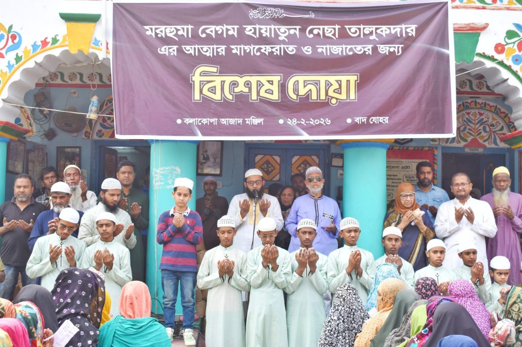মঙ্গলবার (২৪ ফেব্রুয়ারি) দিনব্যাপী নানা কর্মসূচীর মধ্যেদিয়ে বগুড়া গাবতলীর বালিয়াদিঘী কলাকোপা’য় মরহুমা হাজী বিবি হায়াতুন নেছা তালুকদারের ৩৩ তম মৃত্যু বার্ষিকী পালিত হয়েছে। মৃত্যু বার্ষিকী উপলক্ষে মরহুমার আত্মার মাগফেরাত কামনা ও নাজাতের জন্য বিশেষ দোয়া মোনাজাত শেষে আজাদ মঞ্জিলে গরীব ও দুুঃস্থদের মাঝে চাউল ও নগদ অর্থসহ মিষ্টি বিতরণ করা হয়। এ সময় উপস্থিত ছিলেন মরহুমার পুত্র বিএনপি চেয়ারম্যান উপদেষ্টা কাউন্সিলের সদস্য ও কেন্দ্রীয় কৃষকদলের সিনিয়র সহ-সভাপতি এবং সাবেক এমপি মোঃ হেলালুজ্জামান তালুকদার লালু, গ্রীণ কলাকোপা এষ্টেট এর মহাপরিচালক এবং দৈনিক উত্তর কোণ পত্রিকার ব্যবস্থাপনা পরিচালক বেগম শামসুন নাহার জামান তালুকদার, উপদেষ্টা পরিষদের সদস্য জোবেদা খাতুন, অধ্যাপিকা মাহমুদা হাকিম, পরিবারের সদস্য সাবেক এমপি লালু’র কনিষ্ঠ পুত্র ও দৈনিক উত্তর কোণ পত্রিকার সম্পাদক মোঃ সাহেদুজ্জামান সিরাজ বিজয়, সহধর্মীনি তাহরিমা আফরিন তমা ও পুত্র সাদাদুজ্জামান তালুকদার জাওয়াদ, সাফারাতুজ্জামান তালুকদার জেইন প্রমূখ। দোয়া মোনাজাত পরিচালনা করেন মাওলানা হাফেজ মোঃ হাবিবুর রহমান।
