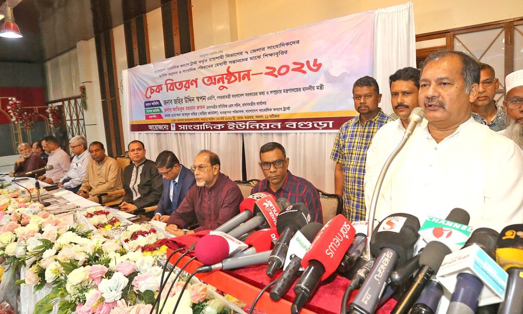 তথ্য ও সম্প্রচারমন্ত্রী জহির উদ্দিন স্বপন বলেছেন, বগুড়াবাসীকে যে অধিকার থেকে বঞ্চিত করা হয়েছে, সেগুলো তালিকা করে ফিরিয়ে দেওয়া হবে। পাশাপাশি বগুড়া প্রেসক্লাব পূর্ণাঙ্গভাবে নির্মাণের দায়িত্ব তিনি মন্ত্রী হিসেবে নিয়েছেন। শুক্রবার বেলা সাড়ে ১১টার দিকে বগুড়া শহরের করতোয়া কনভেনশন সেন্টারে বাংলাদেশ সাংবাদিক কল্যাণ ট্রাস্ট আয়োজিত রাজশাহী বিভাগের সাত জেলার সাংবাদিকদের আর্থিক অনুদান এবং সাংবাদিক পরিবারের মেধাবী সন্তানদের মাঝে শিক্ষাবৃত্তির চেক বিতরণ অনুষ্ঠানে প্রধান অতিথির বক্তব্যে তিনি এসব কথা বলেন। মন্ত্রী বলেন, কিছু পেশা রয়েছে যেগুলোকে রাষ্ট্র ও সমাজকে পৃষ্ঠপোষকতা দিতে হয়। জ্ঞান ও মেধাভিত্তিক পেশা দিয়ে সাধারণত বিত্তবান হওয়া যায় না। সাংবাদিকতাও তেমন একটি পেশা। একজন সাংবাদিক যদি আমৃত্যু এই পেশায় নিষ্ঠার সঙ্গে কাজ করেন, তাহলে তিনি সহজে বিত্তবান হতে পারেন না। কারণ এই পেশায় জ্ঞান, আদর্শ ও দায়িত্ববোধ সবচেয়ে বড় বিষয়। বগুড়ায় টেলিভিশন কেন্দ্র স্থাপনের বিষয়ে তিনি বলেন, মরহুম বেগম খালেদা জিয়া এখানে একটি টিভি কেন্দ্র স্থাপনের উদ্যোগ নিয়েছিলেন। সেই স্বপ্ন বাস্তবায়নে দ্রুত কার্যক্রম শুরু করা হবে।