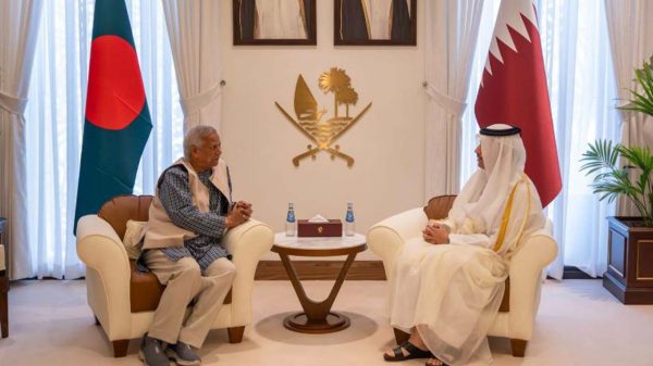 কাতারের প্রধানমন্ত্রী শেখ মোহাম্মদ বিন আবদুল রহমান বিন জাসিম আল থানির সাথে বৈঠক করেছেন প্রধান উপদেষ্টা অধ্যাপক ড. মুহাম্মদ ইউনূস। আজ বৃহস্পতিবার কাতারের প্রধানমন্ত্রীর কার্যালয়ে এ বৈঠক অনুষ্ঠিত হয়।এতে দুই