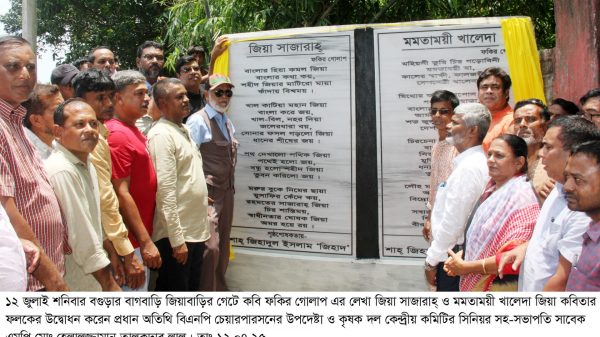 বগুড়ার জিয়াবাড়ীতে ”জিয়া সাজারাহ্ ও মমতাময়ী খালেদা জিয়া” কবিতার ফলক উদ্বোধন করলেন বিএনপি চেয়ারপার্সন উপদেষ্টা ও কেন্দ্রীয় কৃষকদলের সিনিয়র সহ-সভাপতি এবং সাবেক এমপি মোঃ হেলালুজ্জামান তালুকদার লালু। ১২ জুলাই শনিবার