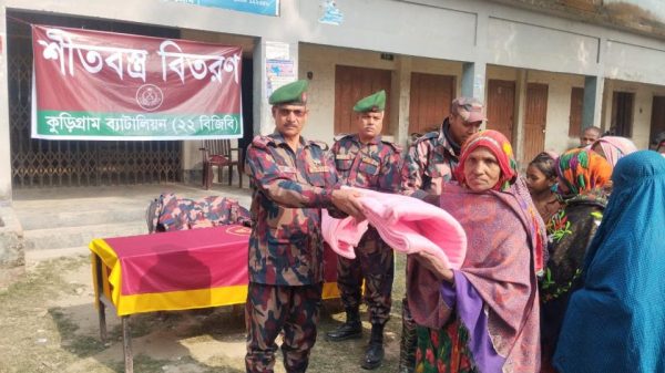 সাইফুর রহমান শামীম,কুড়িগ্রাম।। কুড়িগ্রাম জেলায় শীতের তীব্রতা ক্রমশ বৃদ্ধি পাওয়ায় সীমান্তবর্তী চরাঞ্চলের শীতার্ত, দরিদ্র ও দুঃস্থ মানুষের কষ্ট লাঘবে মানবিক উদ্যোগ গ্রহণ করেছে কুড়িগ্রাম ব্যাটালিয়ন-২২ বিজিবি। শনিবার সকালে ১০ জানুয়ারি