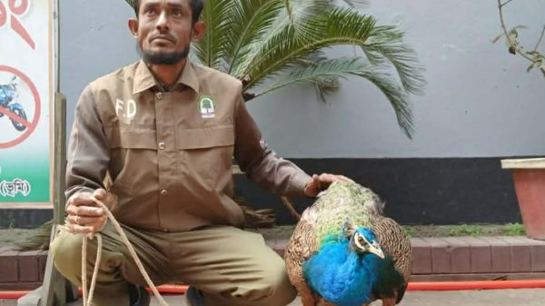 সাইফুর রহমান শামীম, কুড়িগ্রাম। কুড়িগ্রামের উলিপুর উপজেলায় আহত অবস্থায় একটি বিরল প্রজাতির ময়ূর উদ্ধার করেছে উপজেলা প্রশাসন ও বন বিভাগ। রোববার (১১ জানুয়ারি) সকালে ব্রহ্মপুত্র নদ বেষ্টিত উলিপুর উপজেলার বুড়াবুড়ি