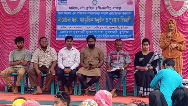সাইফুর রহমান শামীম,কুড়িগ্রাম।। কুড়িগ্রামের ভূরুঙ্গামারীতে ”করব না আর বাল্যবিয়ে এগিয়ে যাব স্বপ্ন নিয়ে, মেয়ারা বোঝা নয় সুযোগ দিলেই সম্পদ হয়” এ প্রতিপাদ্যকে সামনে রেখে বাল্যবিবাহের ঝুঁকি, জোরপূর্বক বিবাহ এবং বাল্যবিবাহের