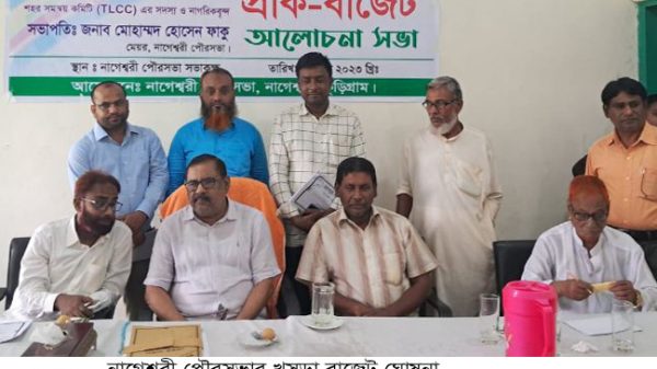 কুড়িগ্রাম প্রতিনিধি : কুড়িগ্রামের নাগেশ্বরী পৌরসভার আয়োজনে পৌরহল রুমে বুধবার (১৪ জুন) সকালে শহর সমন্বয় কমিটি টিএলসিসির আলোচনা সভায় পৌরসভার ২০২৩-২০২৪ অর্থ বছরের প্রস্তাবিত বাজেট চুরান্ত করার লক্ষে মেয়রের সভাপতিত্বে
