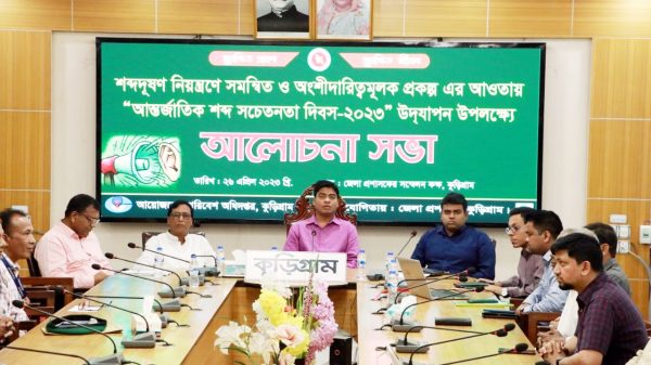 কুড়িগ্রাম প্রতিনিধি।। , “সুরক্ষিত শ্রবণ,সুরক্ষিত জীবন” এই শ্লোগানকে সামনে রেখে “শব্দদূষণ নিয়ন্ত্রণে সমন্বিত ও অংশীদারিত্বমূলক প্রকল্প” এর আওতায় “আন্তর্জাতিক শব্দ সচেতনতা দিবস পালিত হয়েছে। বুধবার (২৬ এপ্রিল) ২০২৩” উদযাপন উপলক্ষ্যে