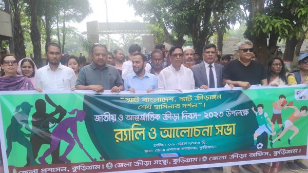 কুড়িগ্রাম প্রতিনিধিঃ “স্মার্ট বাংলাদেশ, স্মার্ট ক্রীড়াঙ্গন- শেখ হাসিনার দর্শন” এই স্লোগানে কুড়িগ্রামে জাতীয় ও আন্তর্জাতিক ক্রীড়া দিবস উদযাপন উপলক্ষে র্যালী ও আলোচনা সভা অনুষ্ঠিত হয়েছে। বৃহস্পতিবার সকালে জেলা স্টেডিয়াম থেকে