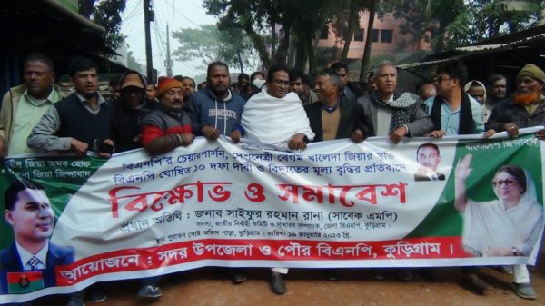 কুড়িগ্রাম : বিদ্যুতের বর্ধিত মূল্য প্রত্যাহার ও বেগম খালেদা জিয়ার মুক্তিসহ ১০ দফা দাবীতে কুড়িগ্রামে বিএনপির বিক্ষোভ সমাবেশ অনুষ্ঠিত হয়েছে। সোমবার (১৬ জানুয়ারী)সকাল ১১ টায় পোষ্ট অফিস পারাস্থ দলীয় কার্যালয়