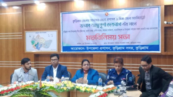 সাইফুর রহমান শামীম, কুড়িগ্রাম।। কুড়িগ্রামের জেলা প্রশাসক ও জেলা ম্যাজিস্ট্রেট অন্নপূর্ণা দেবনাথের সাথে কুড়িগ্রাম সদর উপজেলার বীর মুক্তিযোদ্ধা, জুলাই যোদ্ধা, সুশীল সমাজ, রাজনৈতিক দলগুলোর নেতা, বিভিন্ন দপ্তরের কর্মকর্তাবৃন্দ এবং সাংবাদিকদের