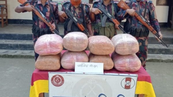 কুড়িগ্রাম।। কুড়িগ্রামের ফুলবাড়ীতে মাদক বিরোধী বিশেষ অভিযান চালিয়ে বিপুল পরিমাণ ভারতীয় গাঁজা উদ্ধার করেছে বিজিবি। সোমবার (১৭ নভেম্বর) রাত সোয়া নয়টার দিকে উপজেলার অনন্তপুর সীমান্ত এলাকায় অনন্তপুর বিওপির বিজিবি সদস্যরা