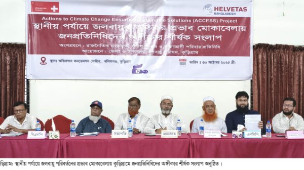 সাইফুর রহমান শামীম, কুড়িগ্রাম।। স্থানীয় পর্যায়ে জলবায়ু পরিবর্তনের প্রভাব মোকাবেলা: জনপ্রতিনিধিদের অঙ্গীকার শীর্ষক সংলাপ অনুষ্ঠিত হয়েছে। কুড়িগ্রাম জেলা ও উপজেলা জলবায়ু পরিষদের আয়োজন বৃহস্পতিবার দিনব্যাপী অভিনন্দন কনভেনশন সেন্টারে এ সংলাপ