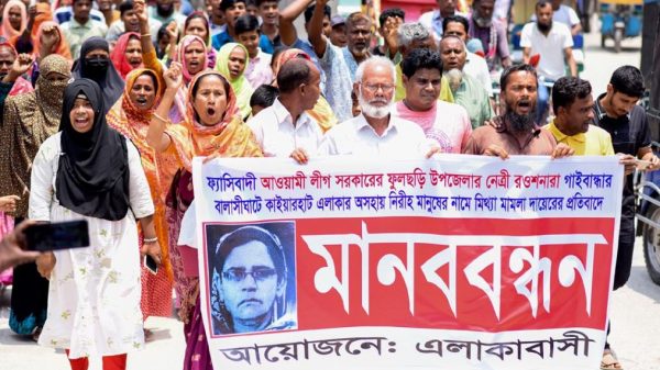 গাইবান্ধায় মিথ্যা মামলা দিয়ে হয়রানি করার অভিযোগে রওশন আরা নামের এক আওয়ামী লীগ নেত্রীর বিরুদ্ধে বিক্ষোভ, মানববন্ধন ও সংবাদ সম্মেলন করেছে বিক্ষুব্ধ এলাকাবাসী। শনিবার দুপুরে গাইবান্ধা প্রেসক্লাব মিলনায়তনে সংবাদ সম্মেলন