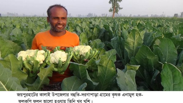 কালাই (জয়পুরহাট) প্রতিনিধি ঃ জয়পুরহাটের কালাইয়ে শীতকালীন সবজি ফুলকপির বাম্পার ফলন হয়েছে। এ বছর শীত মৌসুমে ফুলকপির চাষ করে সবাইকে তাক লাগিয়ে দিয়েছেন উপজেলার বহুতি-দরগাপাড়া গ্রামের কৃষক এনামুল হক। আবহাওয়া