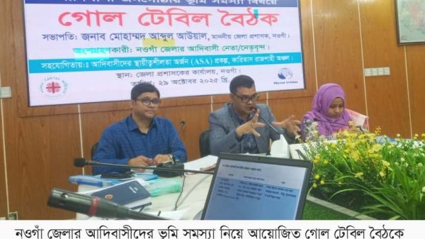 মহাদেবপুর (নওগাঁ) সংবাদদাতা: নওগাঁ জেলার আদিবাসীদের ভূমি সমস্যা নিয়ে গোল টেবিল বৈঠক অনুষ্ঠিত হয়েছে। বুধবার দুপুরে জেলা প্রশাসকের সম্মেলন কক্ষে কারিতাসের আশা প্রকল্প এ গোল টেবিল বৈঠকের আয়োজন করে। জেলা