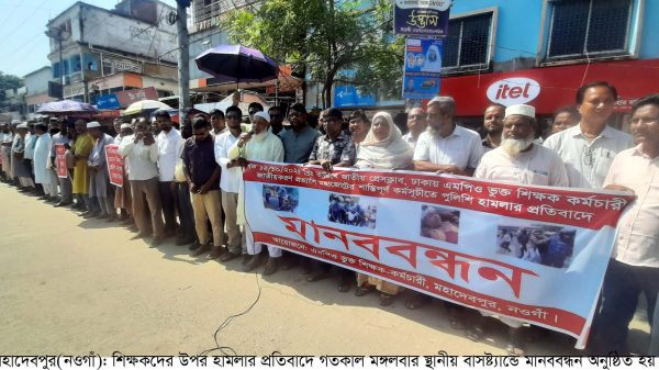 মহাদেবপুর(নওগাঁ )সংবাদদাতা : ঢাকায় এমপিওভুক্ত শিক্ষকদের শান্তিপূর্ণ কর্মসূচীতে পুলিশের বর্বরোচিত হামলা ও নির্যাতনের প্রতিবাদে এবং শতকরা ২০ ভাগ বাড়ি ভাড়া সহ ৩ দফা দাবিতে সারা দেশের মত নওগার মহাদেবপুরেও ক্লাশ
