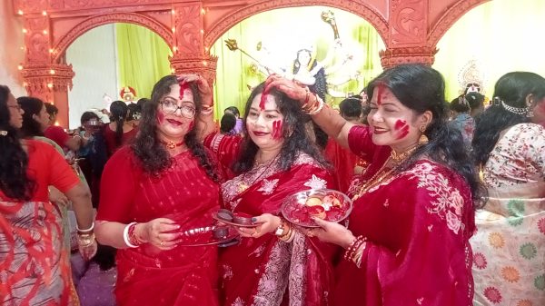 নওগাঁ প্রতিনিধি : উৎসাহ-উদ্দীপনায় মহাষষ্ঠী পূজার মধ্য দিয়ে শুরু হয় শারদীয় দুর্গাপূজা। এরপর হাসি-আনন্দ আর পূজা-অর্চনার মধ্য দিয়ে কেটে গেছে চার দিন। আজ বিসর্জনের মধ্য দিয়ে দেবী দুর্গাকে বিদায় জানানোর