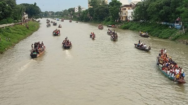 নওগাঁ প্রতিনিধি : নওগাঁয় ছোট যমুনা নদীতে নৌ শোভাযাত্রার মধ্য দিয়ে এ বছর প্রতিমা বিসর্জন দেয়া হয়েছে। বৃহস্পতিবার বিকেলে প্রতিমা বিসর্জন উৎসবে পাঁচ শতাধিক নৌকা অংশ নিতে দেখা যায়। নওগাঁ