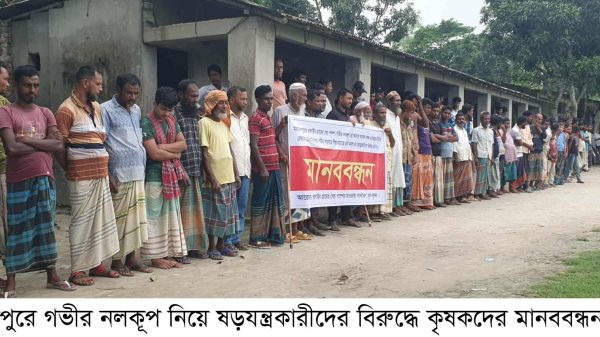 মহাদেবপুর (নওগাঁ) সংবাদদাতা: নওগাঁর মহাদেবপুরে কমিটির মাধ্যমে সুষ্ঠভাবে গভীর নলকূপ পরিচলনার দাবীতে মানববন্ধন করেছেন সাধারণ কৃষকরা। বৃহস্পতিবার দুপুরে ভালাইন গ্রামের সাধারণ কৃষকদের আয়োজনে ভালাইন আলতাফুন্নেসা মেমোরিয়াল উচ্চ বিদ্যালয় মাঠে এ