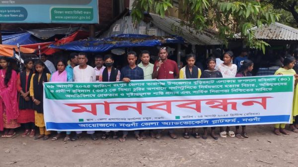 নওগাঁ প্রতিনিধি: রংপুর জেলার তারাগঞ্জ উপজেলার বুড়িরহাট এলাকায় রূপলাল রবিদাস ও প্রদীপ রবিদাসকে চুরির অপবাদে গণপিটুনিতে নির্মমভাবে হত্যার প্রতিবাদে অভিযুক্তদের অনতিবিলম্বে গ্রেফতার ও দৃষ্টান্তমূলক শাস্তি প্রদান এবং ভুক্তভোগী পরিবারের সার্বিক