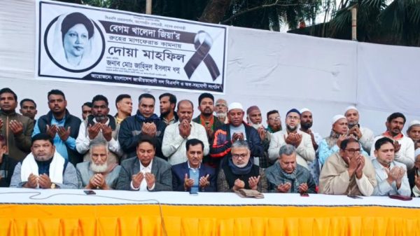 নওগাঁ প্রতিনিধি : বিএনপির চেয়ারপারসন সাবেক প্রধানমন্ত্রী মরহুমা বেগম খালেদা জিয়া’র রুহের মাগফেরাত কামনায় নওগাঁ জেলা ছাত্র দলের বিশেষ দোয়া মাহফিল অনুষ্ঠিত হয়েছে। শুক্রবার শহরের টাউন জামে মসজিদে বাদ জুমার