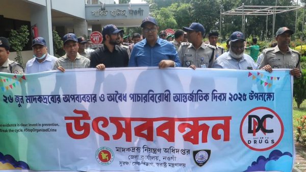 নওগাঁ প্রতিনিধি : মাদকদ্রব্যর অপব্যবহার ও অবৈধ পাচারবিরোধী আন্তর্জাতিক দিবস উপলক্ষে নওগাঁয় র্যালি ও আলোচনা সভা অনুষ্ঠিত হয়েছে। বৃহষ্পতিবার সকালে জেলা প্রশাসন ও মাদক নিয়ন্ত্রণ অধিদপ্তর নওগাঁর আয়োজনে সার্কিট হাউজ