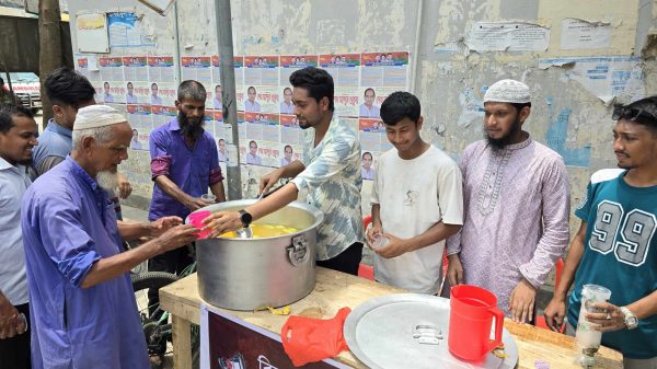 নওগাঁ প্রতিনিধি: বিশ্ব রক্তদাতা দিবস উপলক্ষে নওগাঁ সদর হাসপাতালের সামনে পথচারীদের মাঝে দিনব্যাপী বিনামূল্যে ঠান্ডা শরবত বিতরণ করেছে সামাজিক সংগঠন নওগাঁ ব্লাড সার্কেল। শনিবার সকাল থেকে প্রচন্ড গরমে তৃষ্ণার্ত পথচারীরা।
