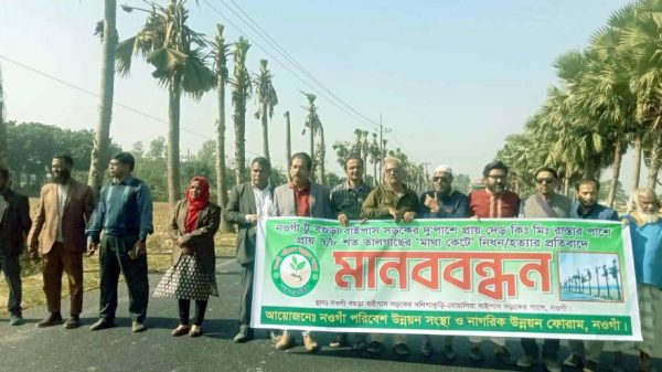 নওগাঁ প্রতিনিধিঃ নওগাঁ টু বগুড়া সড়কের বাইপাস সড়কের দুই পাশে সারিসারি তালগাছ। বাইপাস সড়কের দুই পাশের মধ্যে দক্ষিন পাশের বাইপাস শিবপুর সেতু থেকে বোয়ালিয়া মোড় পর্যন্ত প্রায় দুই কিলোমিটারে ৬