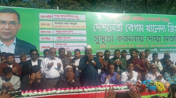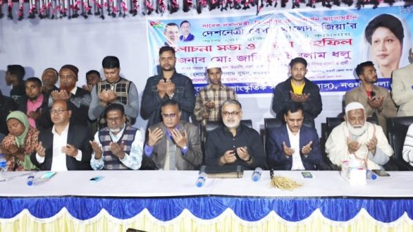 নওগাঁ প্রতিনিধি: বিএনপি চেয়ারপারসন ও সাবেক প্রধানমন্ত্রী বেগম খালেদা জিয়ার আশু রোগমুক্তি ও সুস্থতা কামনায় নওগাঁর মহাদেবপুরে দোয়া মাহফিল অনুষ্ঠিত হয়েছে। দুপুরে উপজেলা ডাক বাংলো মাঠে ধানের শীষ সমর্থক গোষ্ঠী