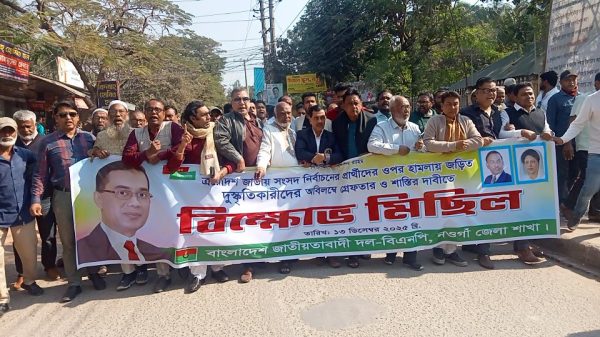 নওগাঁ প্রতিনিধিঃ ইনকিলাব মঞ্চের আহ্বায়ক শরিফ ওসমান হাদির ওপর গুলিবর্ষণের ঘটনার প্রতিবাদে নওগাঁয় বিক্ষোভ মিছিল ও সমাবেশ হয়েছে। শনিবার সকাল সাড়ে ১২টায় শহরের কেডির মোড় দলীয় কার্যালয় হতে নওগাঁ জেলা