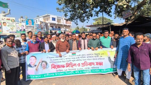 রাণীনগর (নওগাঁ) প্রতিনিধি: ঢাকা-৮ আসনের স্বতন্ত্র প্রার্থী ইনকিলাব মঞ্চের মুখপাত্র শরিফ ওসমান হাদির ওপর গুলিবিদ্ধ হামলার প্রতিবাদে নওগাঁর রাণীনগরে বিক্ষোভ মিছিল ও প্রতিবাদ সভা করেছে উপজেলা বিএনপি। শনিবার উপজেলা বিএনপি