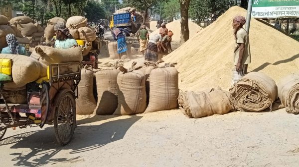 আজাদুল ইসলাম, মহাদেবপুর (নওগাঁ) সংবাদদাতা ঃ বিশাল ধানের স্তুপ দেখে কেউ ভাবতেই পারবেন না এটি নওগাঁর মহাদেবপুর উপজেলা সদরের একটি ব্যস্ত সড়ক। অথচ উপজেলা সদরের পশ্চিম গেটের পাশের এই ব্যস্ত