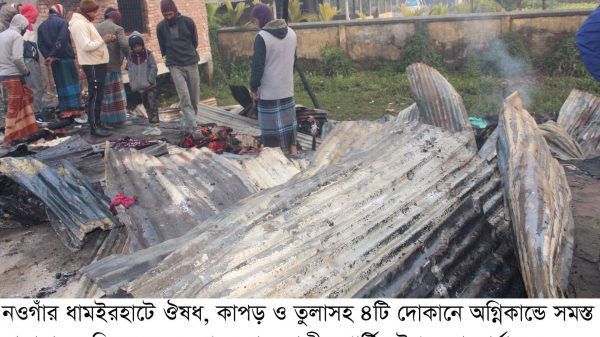নওগাঁ প্রতিনিধি: নওগাঁর ধামইরহাটে অগ্নিকান্ডে জাতীয় পার্টির উপজেলা অফিস সহ ৪টি দোকান ভস্মিভূত হয়েছে। শুক্রবার (২০জানুয়ারী) ভোর রাত পৌনে ৪ টার দিকে ধামইরহাট উপজেলা স্বাস্থ্য কমপ্লেক্সের বাউন্ডারী সংলগ্ন সদর রাস্তার
