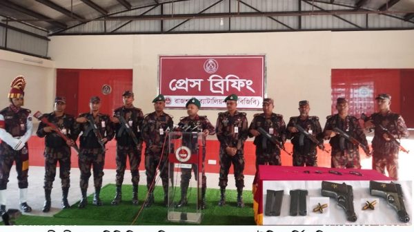 মাসুদ রানা রাব্বানী, রাজশাহী: আসন্ন ত্রয়োদশ জাতীয় সংসদ নির্বাচনকে সামনে রেখে সীমান্ত এলাকায় নিরাপত্তা জোরদারের অংশ হিসেবে সীমান্তবর্তী পদ্মার চরে যুক্তরাষ্ট্রে তৈরি দুটি বিদেশি পিস্তল, চারটি ম্যাগাজিন ও আট রাউন্ড