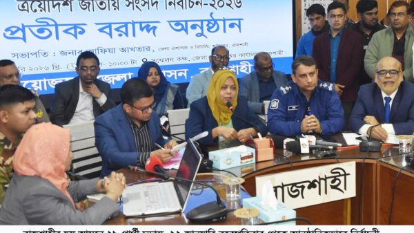 মাসুদ রানা রাব্বানী, রাজশাহী: ত্রয়োদশ জাতীয় সংসদ নির্বাচনের প্রাক-প্রচারণার অন্যতম গুরুত্বপূর্ণ ধাপ হিসেবে রাজশাহী জেলার ছয়টি আসনের প্রতিদ্বন্দ্বী প্রার্থীদের নির্বাচন প্রতীক বরাদ্দ কার্যক্রম আজ সম্পন্ন হয়েছে। প্রতীক বরাদ্দের মধ্য দিয়ে