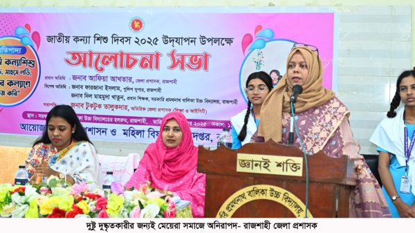 মাসুদ রানা রাব্বানী, রাজশাহী: রাজশাহী জেলা প্রশাসক আফিয়া আখতার বলেছেন, আমরা কন্যা শিশুর অধিকারের কথা বলি। এ অধিকার আমরা কারো কাছে বন্ধক রাখিনি। আমি যদি আমার অধিকার সম্পর্কে সচেতন হই,