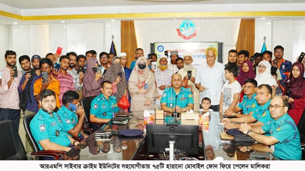 মাসুদ রানা রাব্বানী, রাজশাহী: রাজশাহী মেট্রোপলিটন পুলিশের (আরএমপি) সাইবার ক্রাইম ইউনিটের নিরলস প্রচেষ্টায় চলতি বছরের জুলাই থেকে সেপ্টেম্বর মাস পর্যন্ত উদ্ধার হওয়া ৭৫টি হারানো মোবাইল ফোন তাদের প্রকৃত মালিকদের কাছে