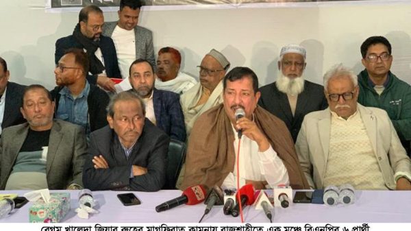 মাসুদ রানা রাব্বানী, রাজশাহী: তিনবারের সাবেক প্রধানমন্ত্রী ও বিএনপি চেয়ারপার্সন দেশনেত্রী বেগম খালেদা জিয়ার রুহের মাগফিরাত কামনায় রাজশাহীতে দোয়া ও আলোচনা সভা অনুষ্ঠিত হয়েছে। বুধবার বেলা ১১টায় নগরীর সাহেববাজার সংলগ্ন