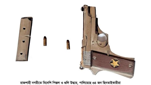 মাসুদ রানা রাব্বানী, রাজশাহী : রাজশাহী নগরীতে অভিযান চালিয়ে একটি বিদেশি পিস্তল, দুই রাউন্ড গুলি ও একটি ম্যাগাজিন উদ্ধার করেছে মহানগর গোয়েন্দা পুলিশ (ডিবি)। সোমবার (১২ জানুয়ারি) দিনগত রাত দেড়টায়