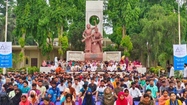 মাসুদ রানা রাব্বানী, রাজশাহী: ‘ভালো মানুষ ভালো দেশ স্বর্গভূমি বাংলাদেশ’ প্রতিপাদ্যকে সামনে রাজশাহী বিশ্ববিদ্যালয়ে (রাবি) ৪র্থ বারের মতো বিশ্ব মেডিটেশন দিবস পালিত হয়েছে। কোয়ান্টাম ফাউন্ডেশনের আয়োজনে মঙ্গলবার (২১ মে) সকাল