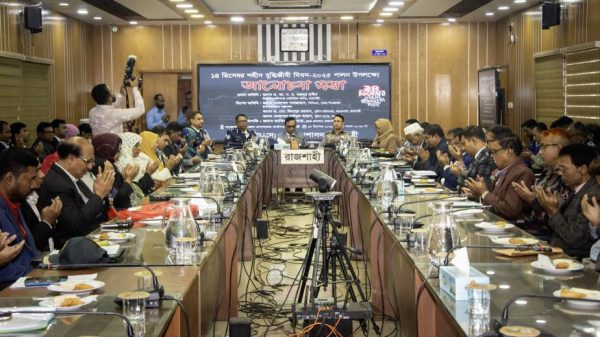 মাসুদ রানা রাব্বানী, রাজশাহী: রাজশাহীতে জুলাই ৩৬ মঞ্চ-এর ব্যানারে আয়োজিত ভারতীয় সহকারী হাইকমিশন ঘেরাও ও লংমার্চ কর্মসূচি পুলিশের বাধার মুখে পণ্ড হয়েছে। বৃহস্পতিবার (১৮ ডিসেম্বর) দুপুর ১টার দিকে নগরীর ভদ্রা