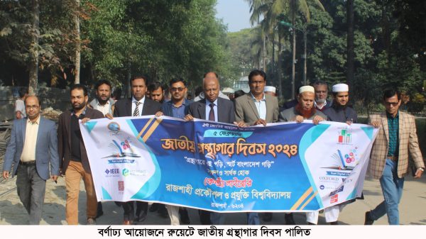 মাসুদ রানা রাব্বানী, রাজশাহী: বর্ণাঢ্য আয়োজনের মধ্যে দিয়ে গ্রন্থাগারে বই পড়ি, স্মার্ট বাংলাদেশ গড়ি, প্রতিপাদ্যকে সামনে রেখে রাজশাহী প্রকৌশল ও প্রযুক্তি বিশ্ববিদ্যালয়ে (রুয়েট) জাতীয় গ্রন্থাগার দিবস পালিত হয়েছে। সোমবার (৫