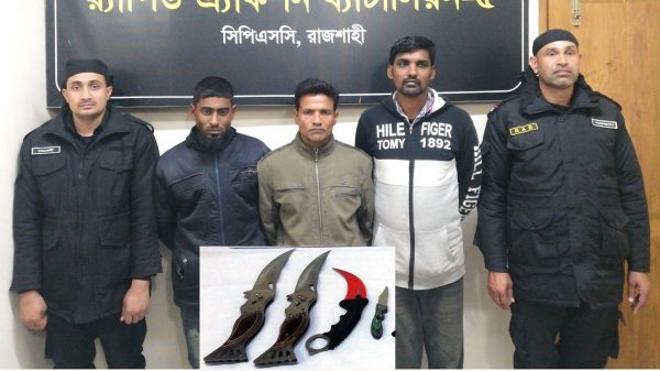 মাসুদ রানা রাব্বানী, রাজশাহী: রাজশাহী মহানগরীতে ছিনতাইকারী চক্রের মূলহোতা-সহ ৩জন ছিনতাইকারীকে গ্রেফতার করেছে র্যাব। মঙ্গলবার (৬ ফেব্রুয়ারি) রাত ১০টায় মহানগরীর কাটাখালী থানাধীন কিসমত কুখন্ডি এলাকা থেকে তাদের গ্রেফতার করা হয়।