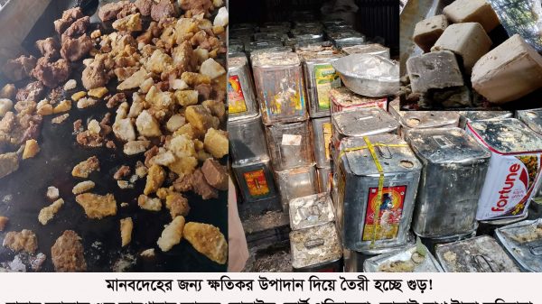 রাজশাহী: র্যাব-৫, রাজশাহীর ও সদর কোম্পানীর যৌথ অভিযানে পৃথক মোবাইল কোর্ট পরিচালনা করে অস্বাস্থ্যকর ও নিম্নমানের ভেজাল গুড় প্রস্তুত করার অপরাধে ৬টি গুড় কারখানার মালিককে ২ লাখ ৪৫ হাজার টাকা