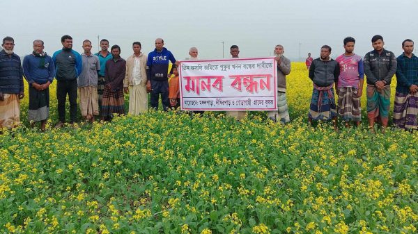 মাসুদ রানা রাব্বানী, রাজশাহী: রাজশাহীর পুঠিয়া উপজেলা শিলমাড়িয়া ইউনিয়নের মঙ্গলপাড়ার গড়াগাছীর বিলে তিন ফসলি কৃষি জমিতে পুকুর খনন বন্ধের দাবিতে মানববন্ধন করেছে এলাকাবাসী। শনিবার (২৩ ডিসেম্বর) বিকালে উপজেলার মঙ্গলপাড়া গড়াগাছীর