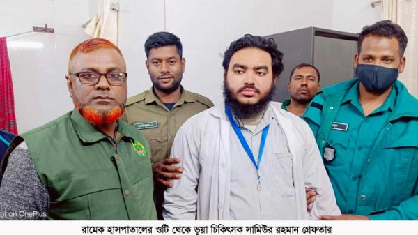 মাসুদ রানা রাব্বানী, রাজশাহী: রাজশাহী মেডিকেল কলেজ (রামেক) হাসপাতালের অপারেশন থিয়েটার (ওটি) থেকে সামিউর রহমান (২৭) নামে এক ভূয়া চিকিৎসককে গ্রেফতার করেছে আনসার সদস্যরা। শুক্রবার (২৯ ডিসেম্বর) দিনগত রাত সাড়ে