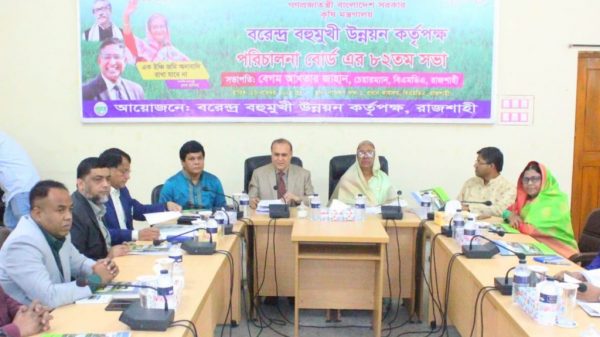 মাসুদ রানা রাব্বানী, রাজশাহী: রাজশাহীতে বরেন্দ্র বহুমুখী উন্নয়ন কর্তৃপরে (বিএমডিএ) পরিচালনা বোর্ড এর ৮২তম সভা অনুষ্ঠিত হয়েছে। প্রধানমন্ত্রী শেখ হাসিনা বলেন ‘এক ইঞ্চি জমি অনাবাদি রাখা যাবে না’ এই প্রতিপাদ্যকে