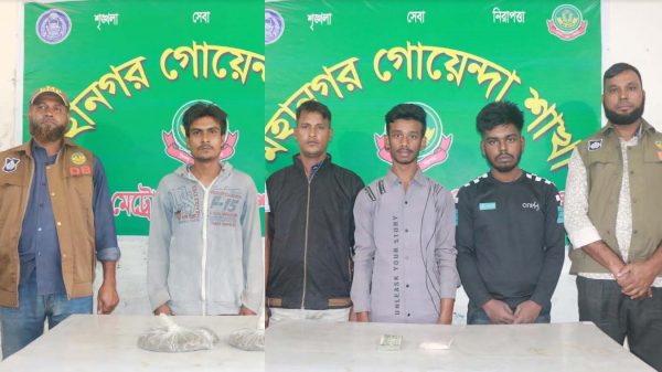 মাসুদ রানা রাব্বানী, রাজশাহী: রাজশাহী মহানগরীর দামকুড়া ও এয়ারপোর্ট থানা এলাকায় হতে ৫০০ গ্রাম গাঁজা ও ৫০ গ্রাম হেরোইনসহ চারজনকে গ্রেফতার করেছে মহানগর গোয়েন্দা পুলিশ (ডিবি)। বৃহস্পতিবার দুপুর পোনে ২টা