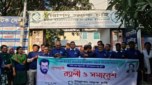 মাসুদ রানা রাব্বানী, রাজশাহী: “আইন মেনে সড়কে চলি, স্মার্ট বাংলাদেশ গড়ে তুলি” প্রতিবাদ্যকে সামনে রেখে নিরাপদ সড়ক চাই (নিসচা), জাতীয় নিরাপদ সড়ক দিবস-২০২৩ উদযাপন উপলক্ষে রাজশাহী জেলা শাখার উদ্যোগে এক