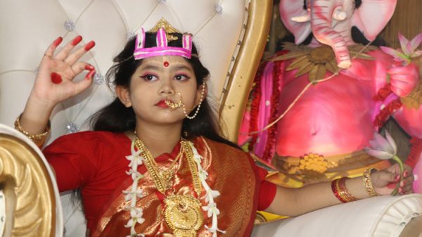 রাতুল সরকার, রাজশাহী: রাজশাহী মহানগরীতে প্রতিবছরের মতো এবারও শারদীয় দূর্গোৎসবের মহাঅষ্টমীতে কুমারী পূজা অনুষ্ঠিত হয়েছে। রোববার (২২ অক্টোবর) নগরীর সাগরপাড়া এলাকার ত্রিনয়নী সংঘে কুমারী পূজা অনুষ্ঠিত হয়। কুমারী পূজায় দেবীর